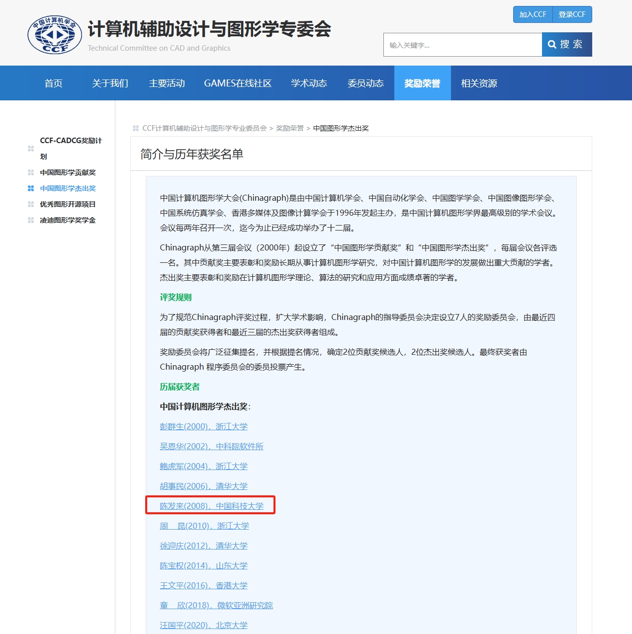 中国计算机图形学杰出奖