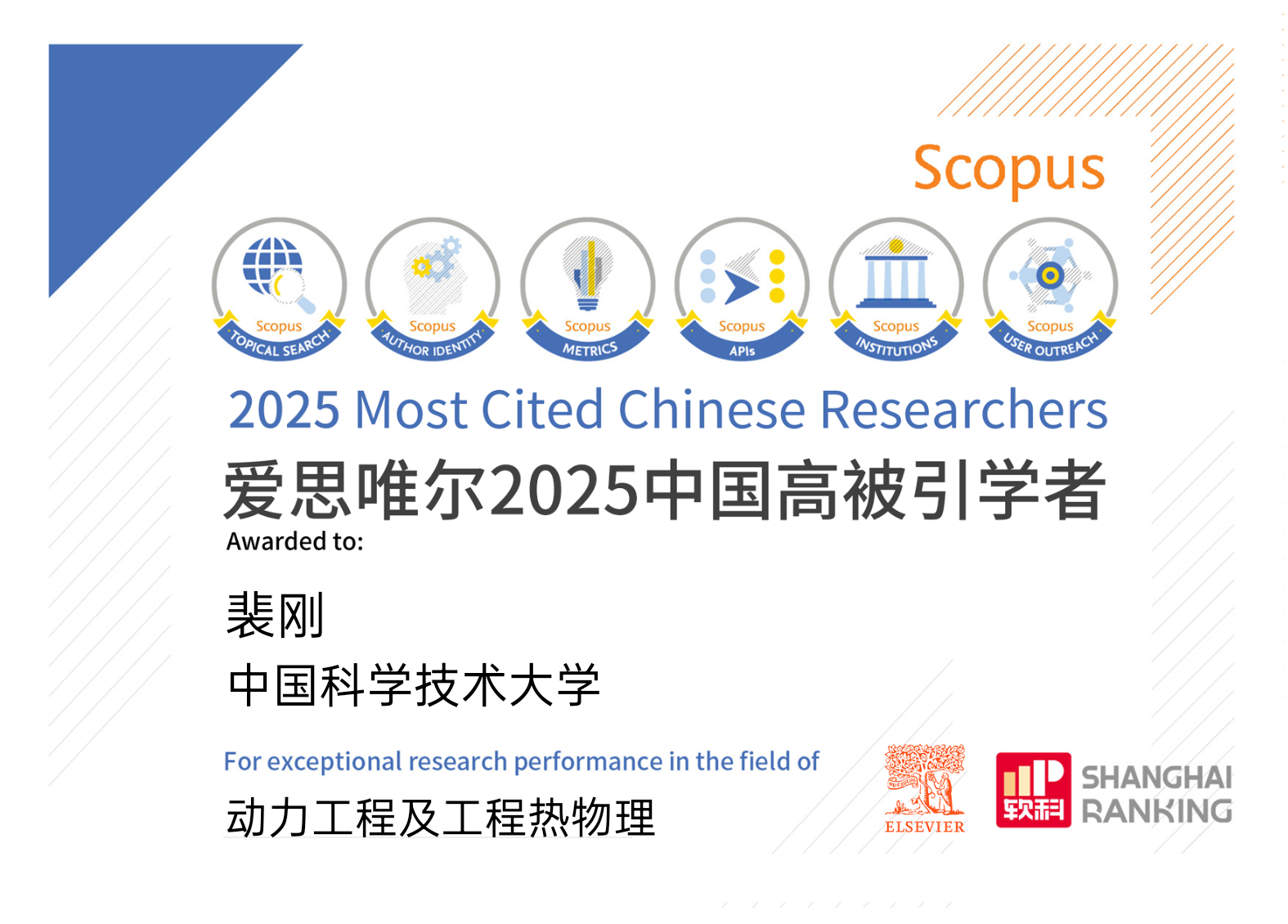 裴刚教授连续五年(2021-2025)入选爱思唯尔(Elsevier)“中国高被引学者”榜单!